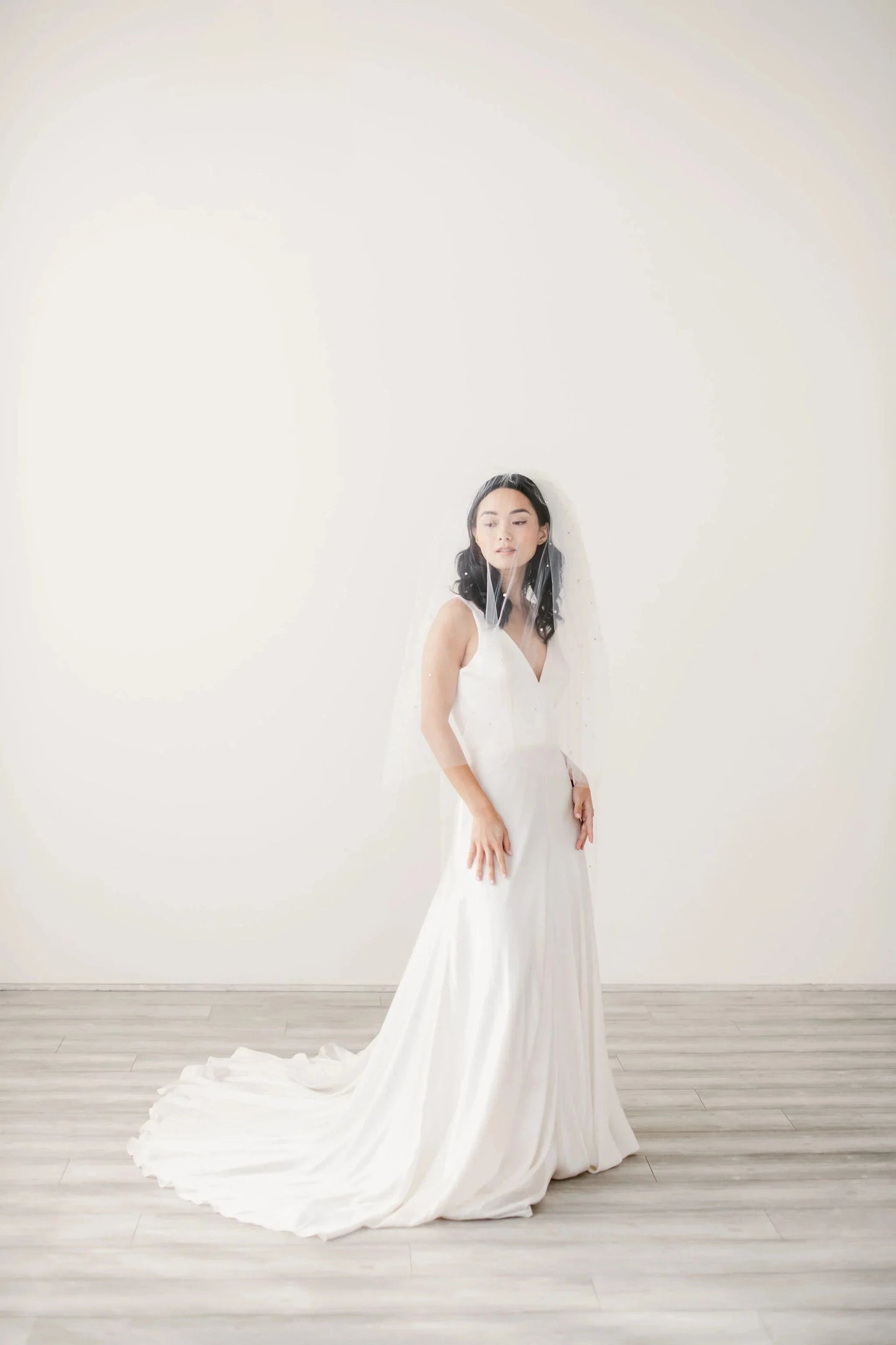 Velo de tul ilusión adornado con cristal con rubor - velo de doble nivel - listo para enviar