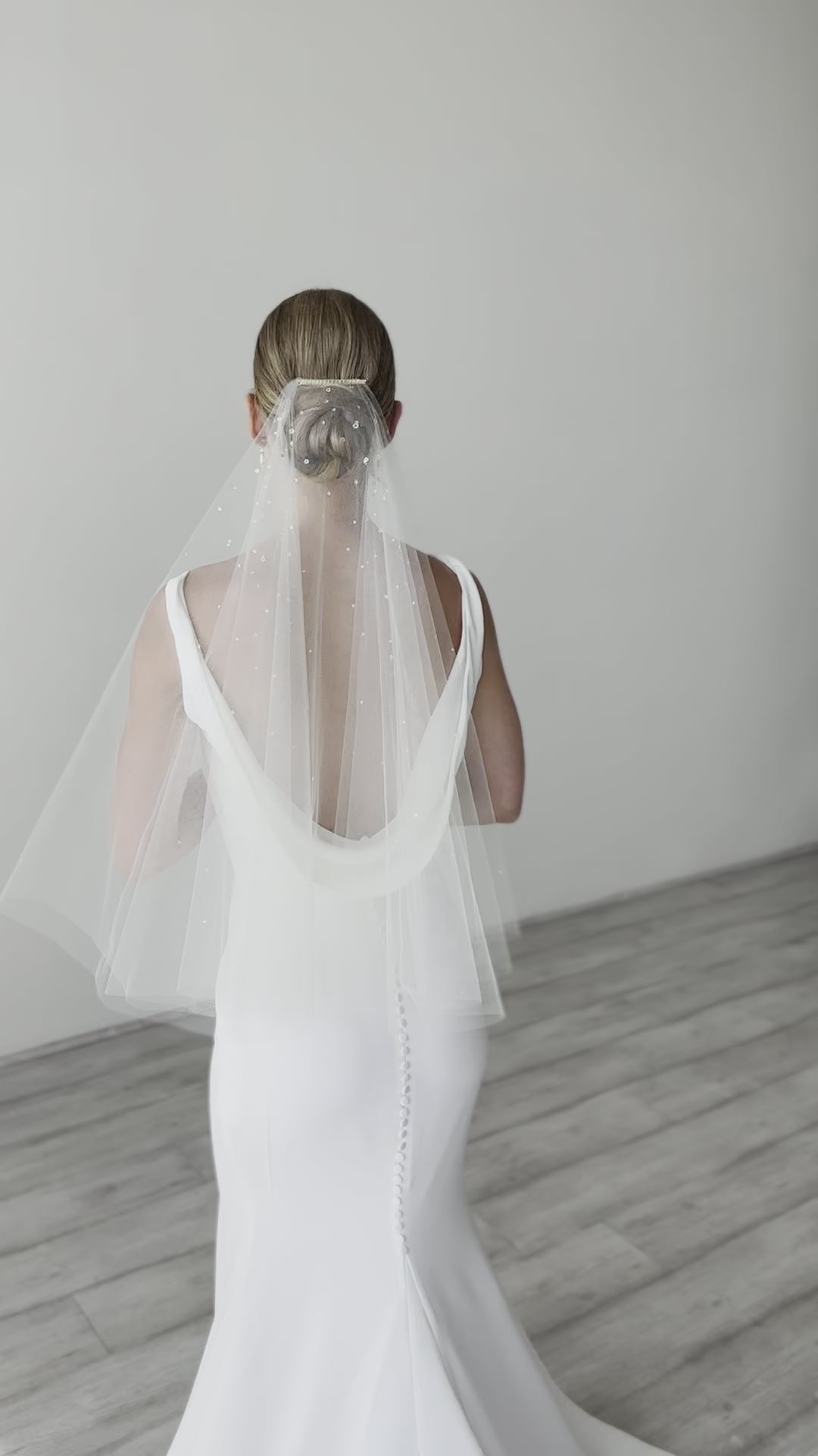Velo inspirado en Sofia Richie. Este hermoso velo en forma de gota de rocío está adornado con brillantes gotas de rocío reunidas cerca de la peineta y cayendo delicadamente hasta el borde, creando una apariencia atemporal, adecuada para las ocasiones más especiales. Elaborado con exquisita atención al detalle, este velo es el accesorio sofisticado perfecto para tu conjunto elegante.