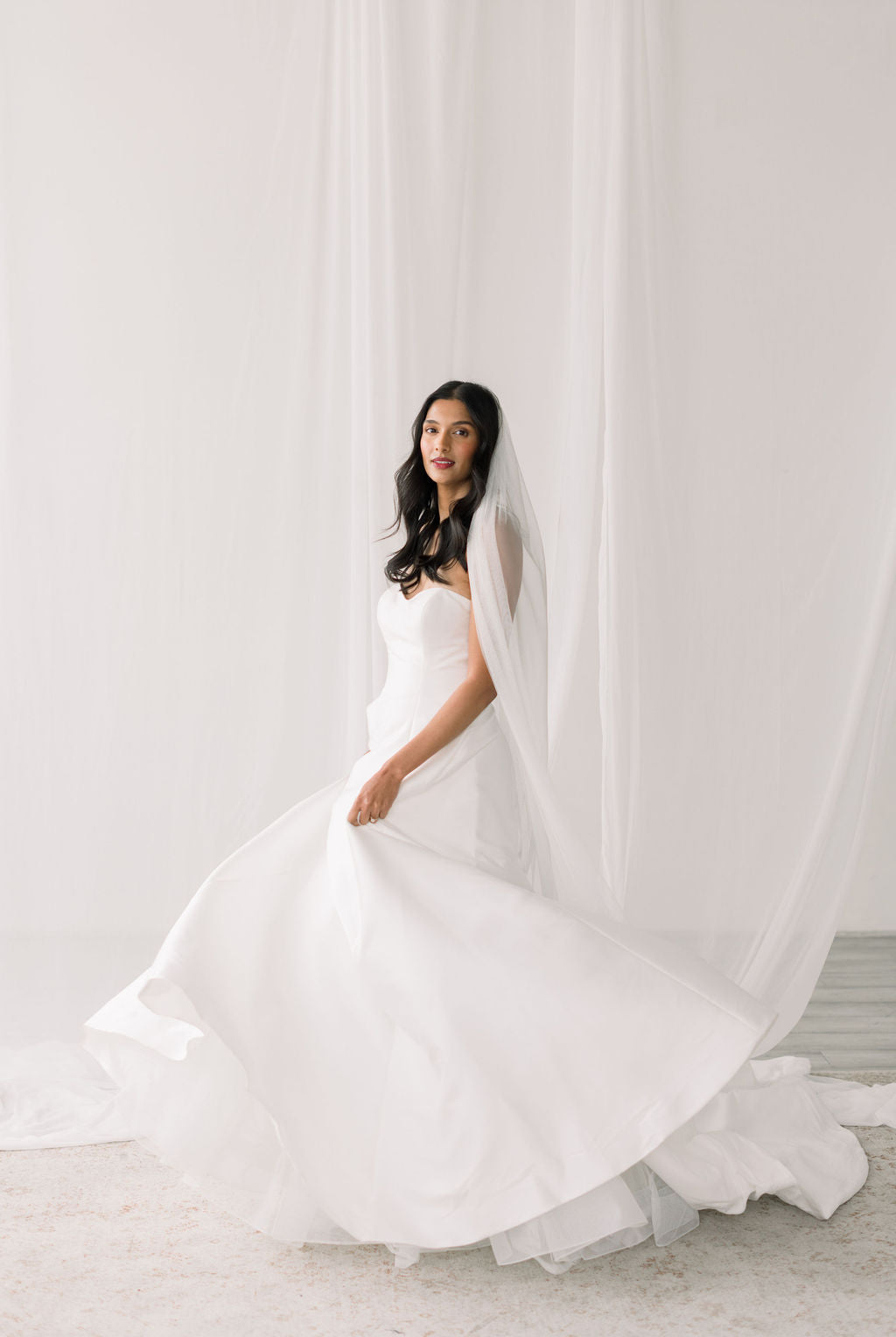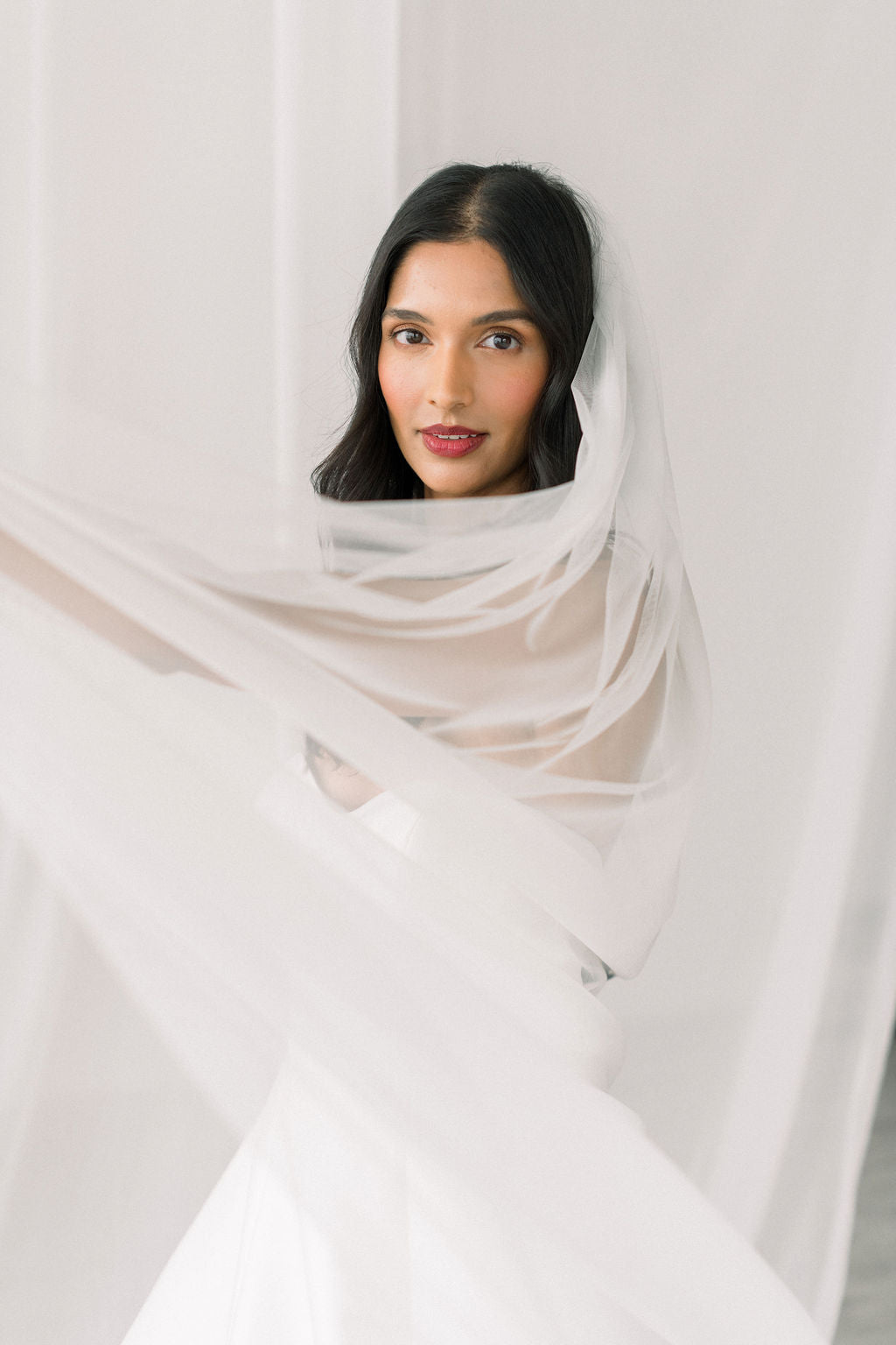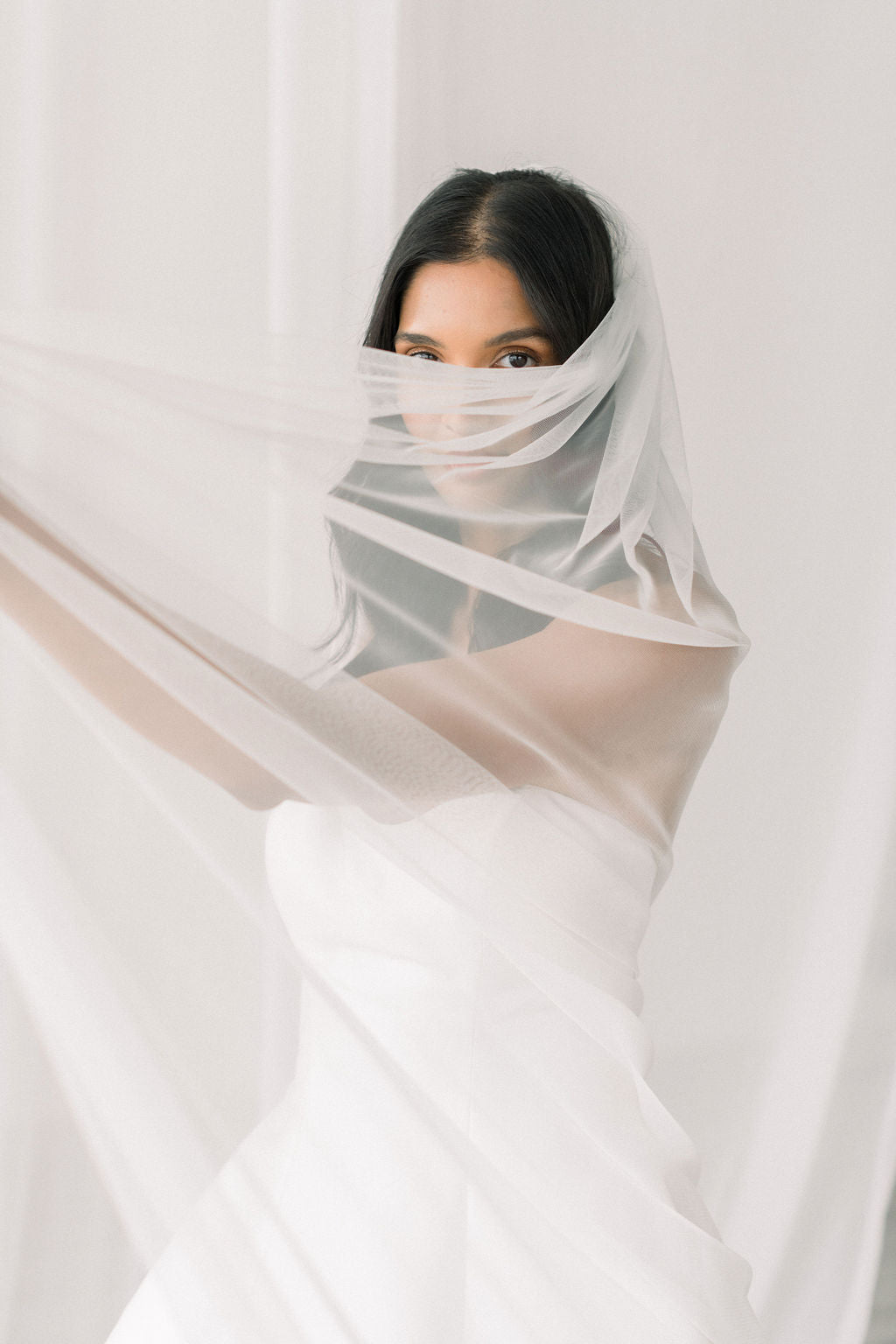 Indulge in our exquisite Italian tulle bridal veil, crafted from luxurious Italian spun tulle with a delicate hand cut edge. Featuring a wire comb for a secure fit, hand gathered for a beautiful drape. Choose from multiple lengths to complement your hairstyle and gown. Elevate your wedding day look with our Italian tulle bridal veil, adding a touch of timeless elegance.