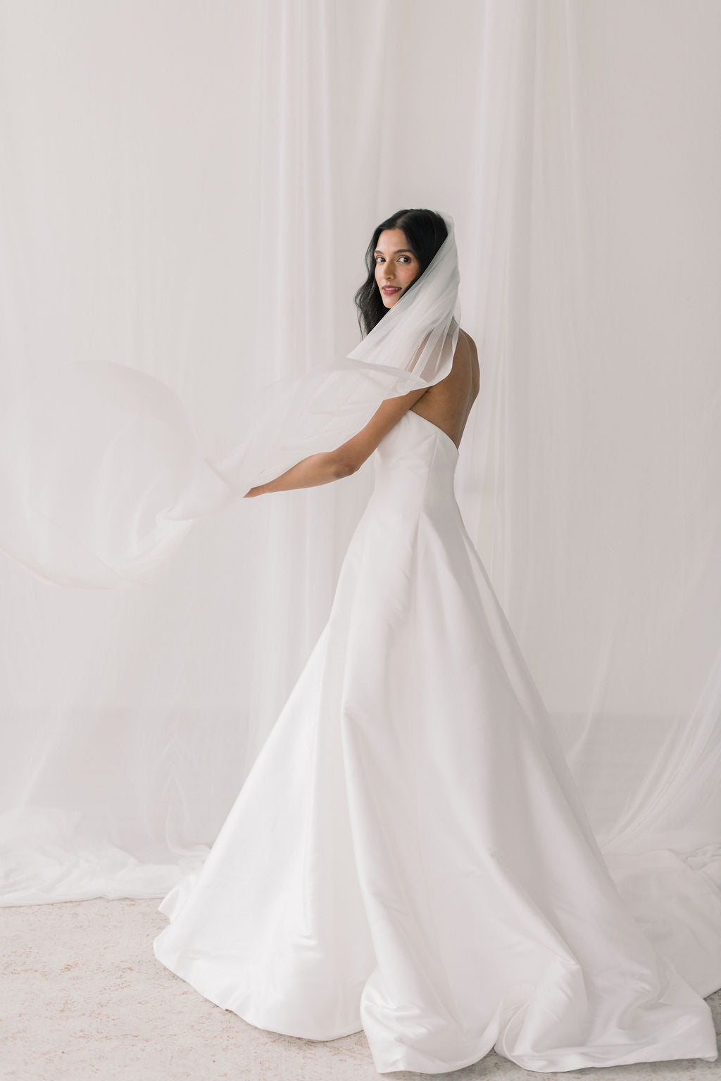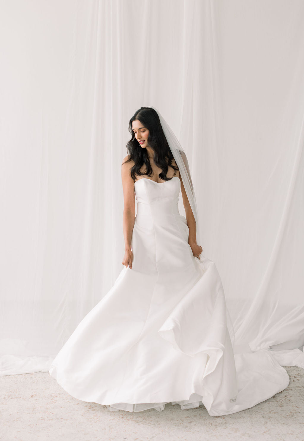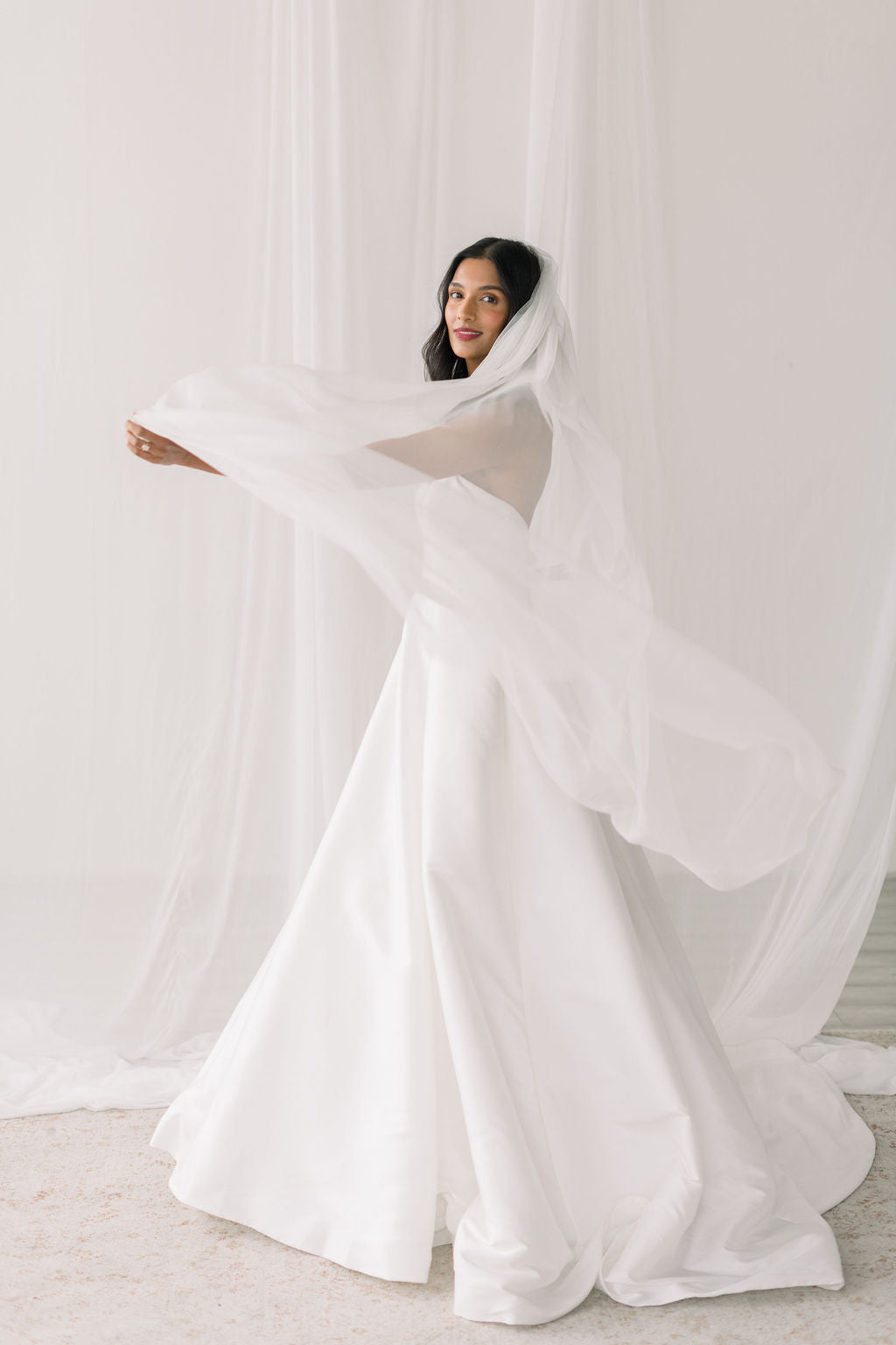 Indulge in our exquisite Italian tulle bridal veil, crafted from luxurious Italian spun tulle with a delicate hand cut edge. Featuring a wire comb for a secure fit, hand gathered for a beautiful drape. Choose from multiple lengths to complement your hairstyle and gown. Elevate your wedding day look with our Italian tulle bridal veil, adding a touch of timeless elegance.